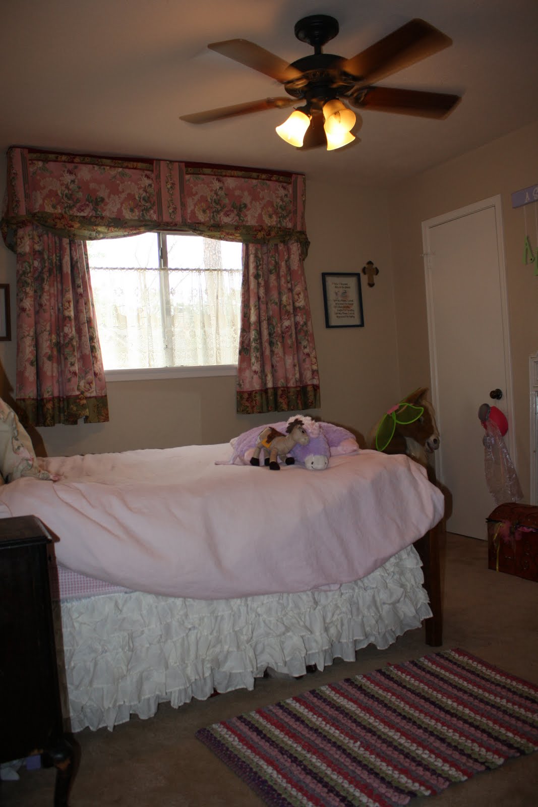 Here are the curtains that my mom made for Addie's room. They are pieced together with a curtain that I had bought and fabric that I had in my apartment in college.